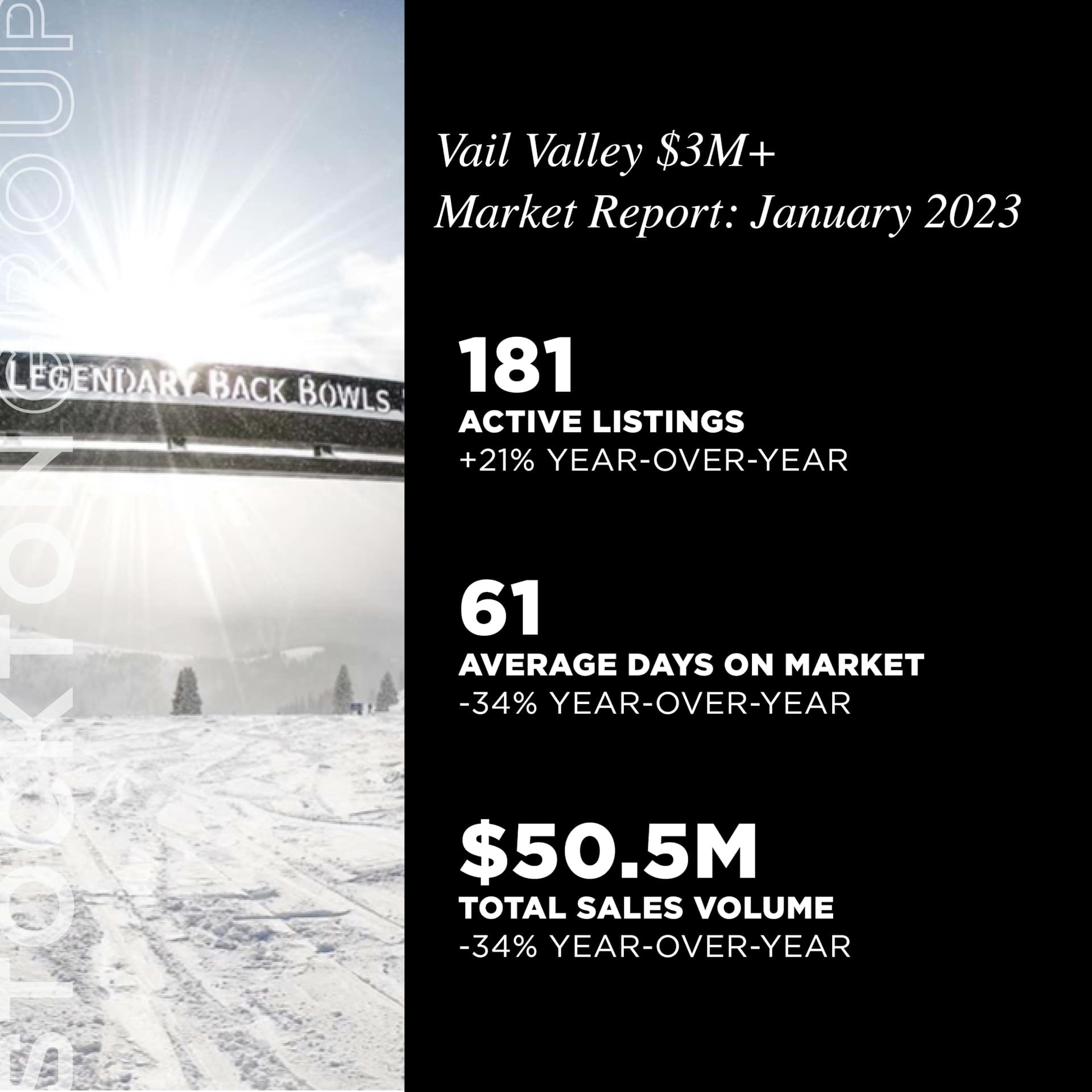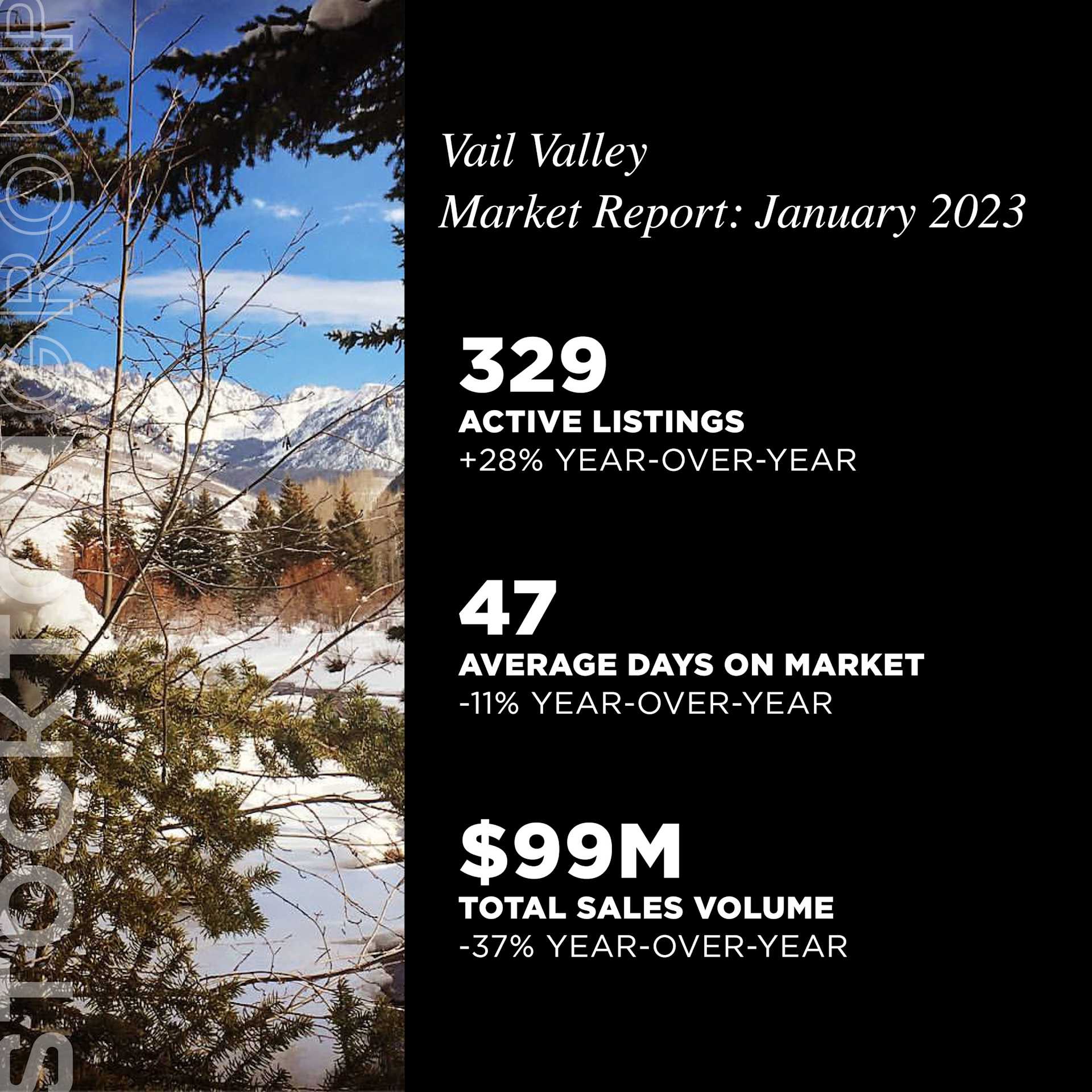 The Vail Valley real estate market saw a steady increase in active listings, currently available for purchase. This represents a 28% year-over-year increase, providing buyers with a wide range of options to choose from. Additionally, the average days on the market decreased by 11% year-over-year, indicating a faster sales cycle for those looking to sell their property. Despite a 37% year-over-year decrease in total sales volume, the market is still active and offers potential buyers and sellers with opportunities to make deals.