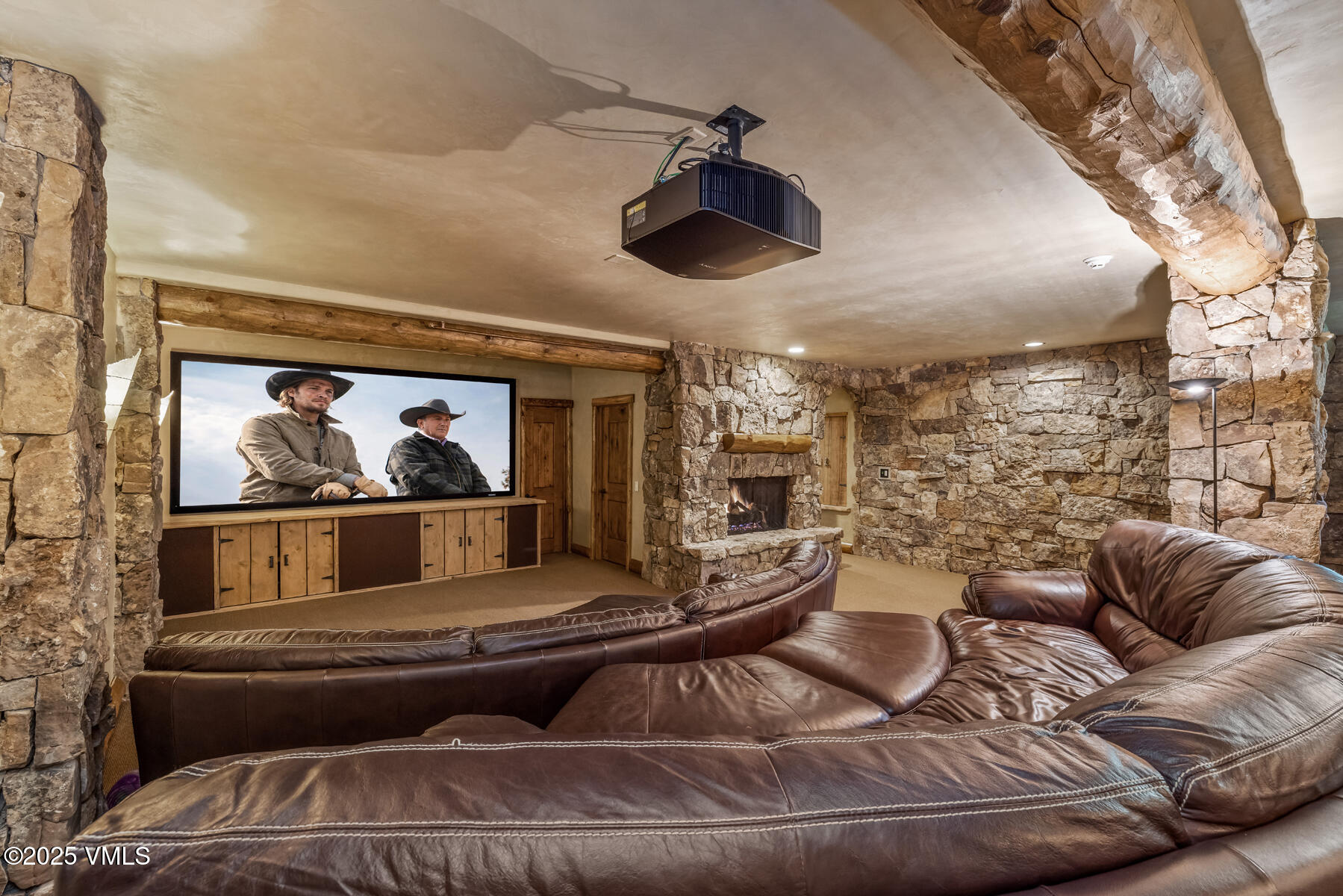 Hand-hewn timber, dry-stack stone, and soaring trusses define the great room, where floor-to-ceiling glass blends seamlessly with the outdoors. A chef's kitchen with an oversized island, butler's pantry, and integrated wine storage anchors the main level, spilling onto south-facing decks ideal for summer entertaining.